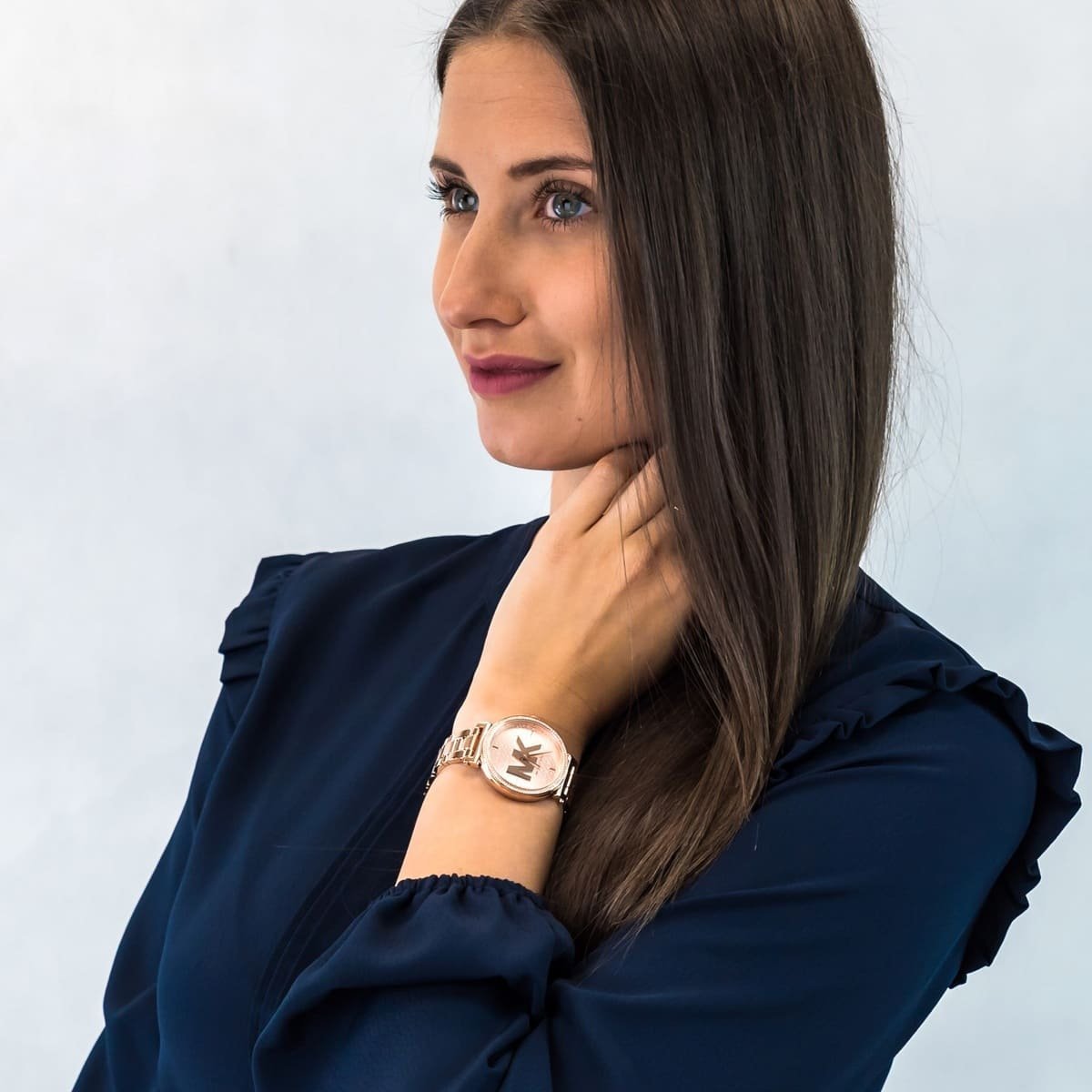 ساعة مايكل كورس حريمي من عائلة موديلات صوفي MK4335 أنيقة بأسعار معقولة مع مظهر فريد، تحتفل بالإبداع الفريد والسّحر إلى جانب الإستقرار والمتانة والقوة والدقة بميناء نحاسي و أستيك لون نحاسي بشكل مميز عن ما قبل من الموديلات و تاخذ القطعه شكل دائري باطار وجسم من الستانلس ستيل المعالج حرارياً المقاوم للصدأ ليحظي بتجربة وديمومة رائعه فى الاستخدام بشكل يومي رائع وفعال