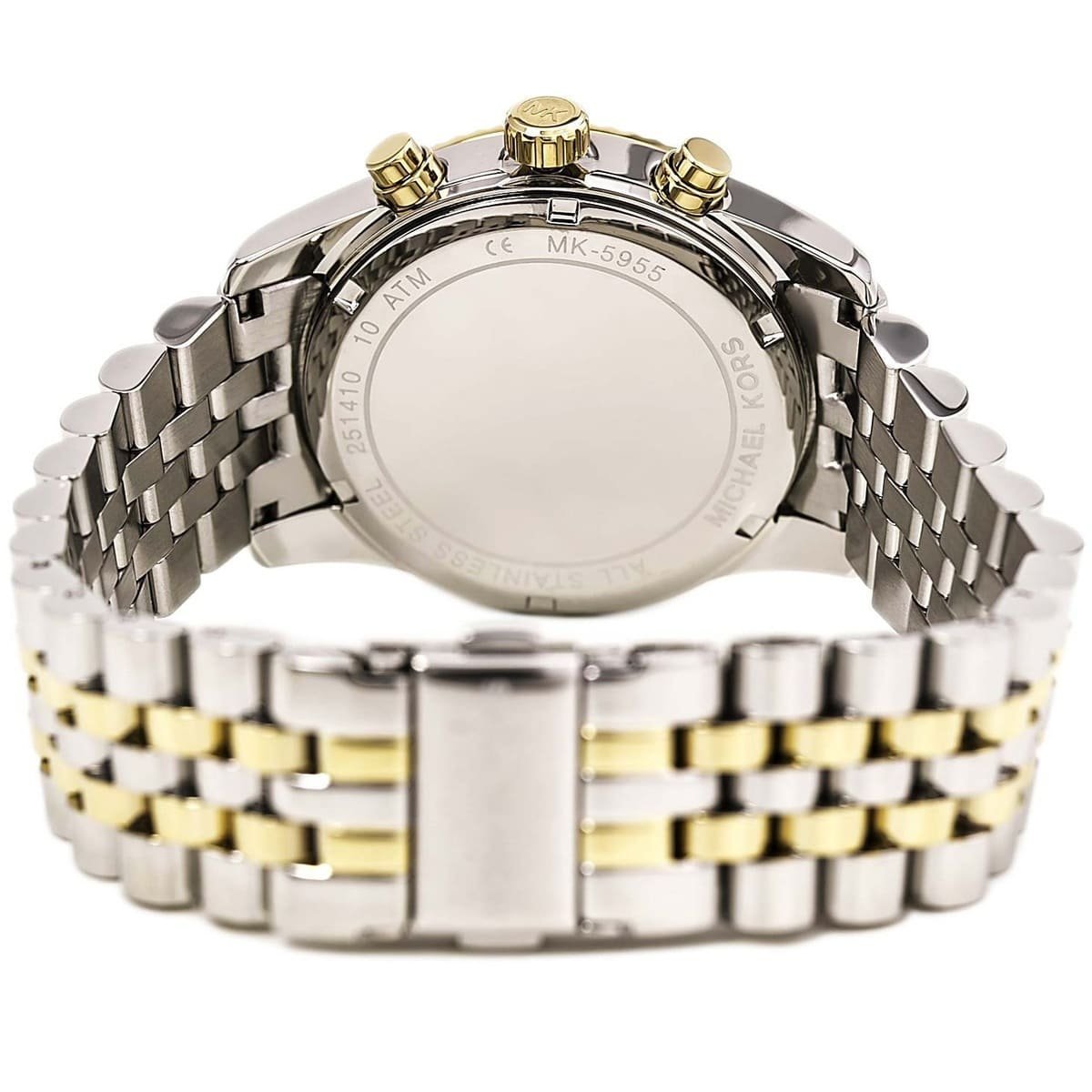 ساعة مايكل كورس حريمي أصلية موديل (ليكسينغتون) Lexington MK5955 بلون ابيض و استيك معدن بلون فضي و ذهبي